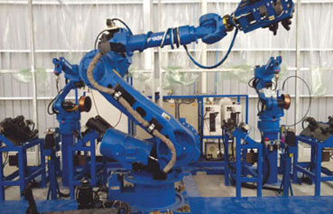 一條生產(chǎn)線兩個普通員工就可以操作,除了節(jié)省勞力外,這些焊接機(jī)器人還可以準(zhǔn)確識別各類型的工件,并傳送在精確的位置上進(jìn)行焊接。在目前人工成本越來越高及招工難的問題上,機(jī)器人智能自動化柔性制造將是未來的發(fā)展趨勢。